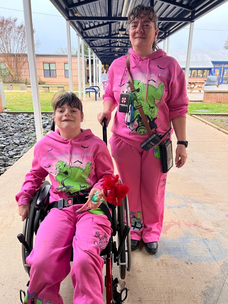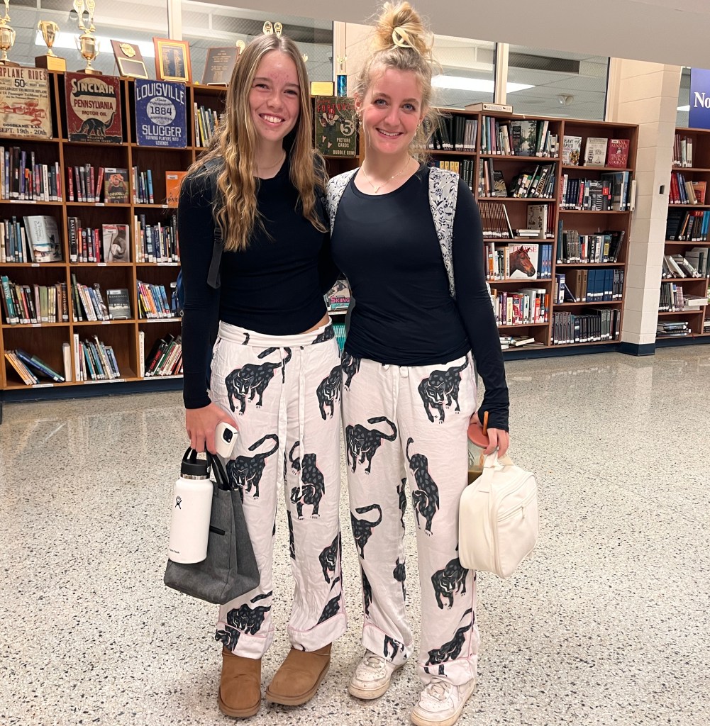 Monday was Pajama Day, Tuesday was Twin Day, Wednesday was Bikers vs. Surfers, Thursday was Dress like a Teacher Day and Friday was Blue & White Day.