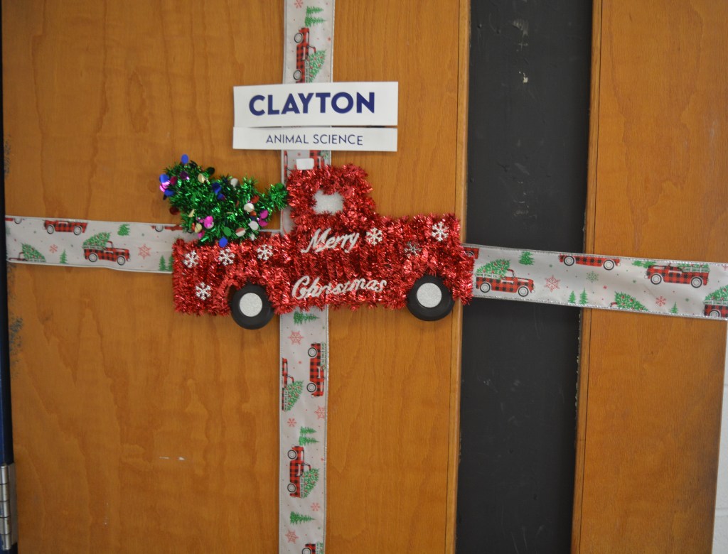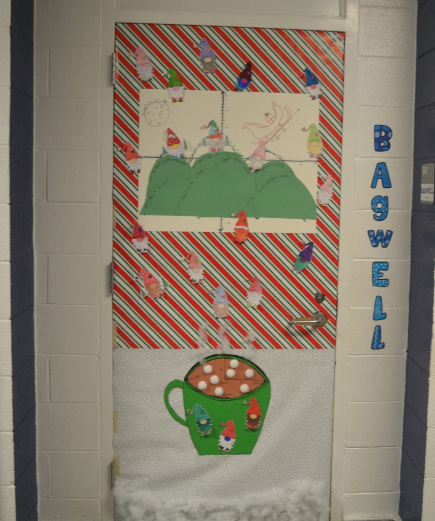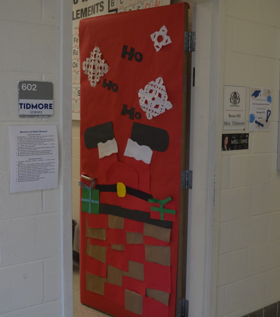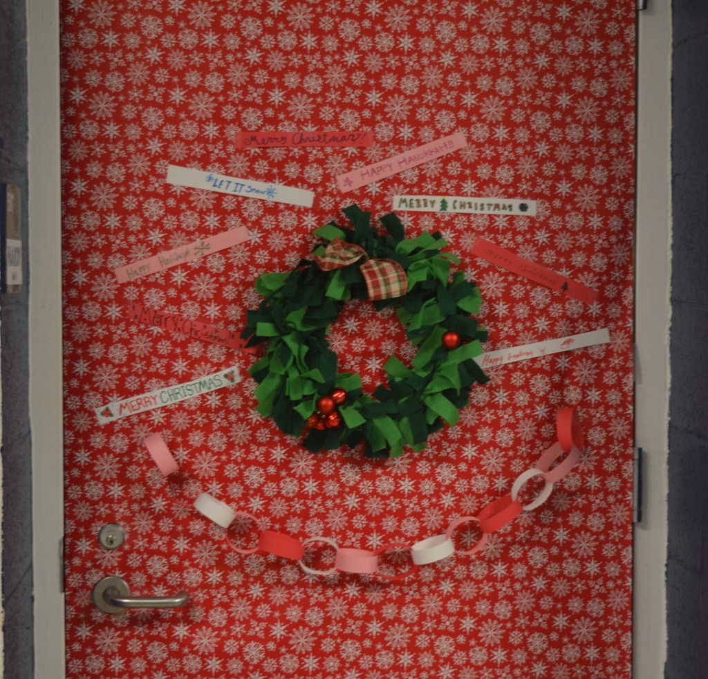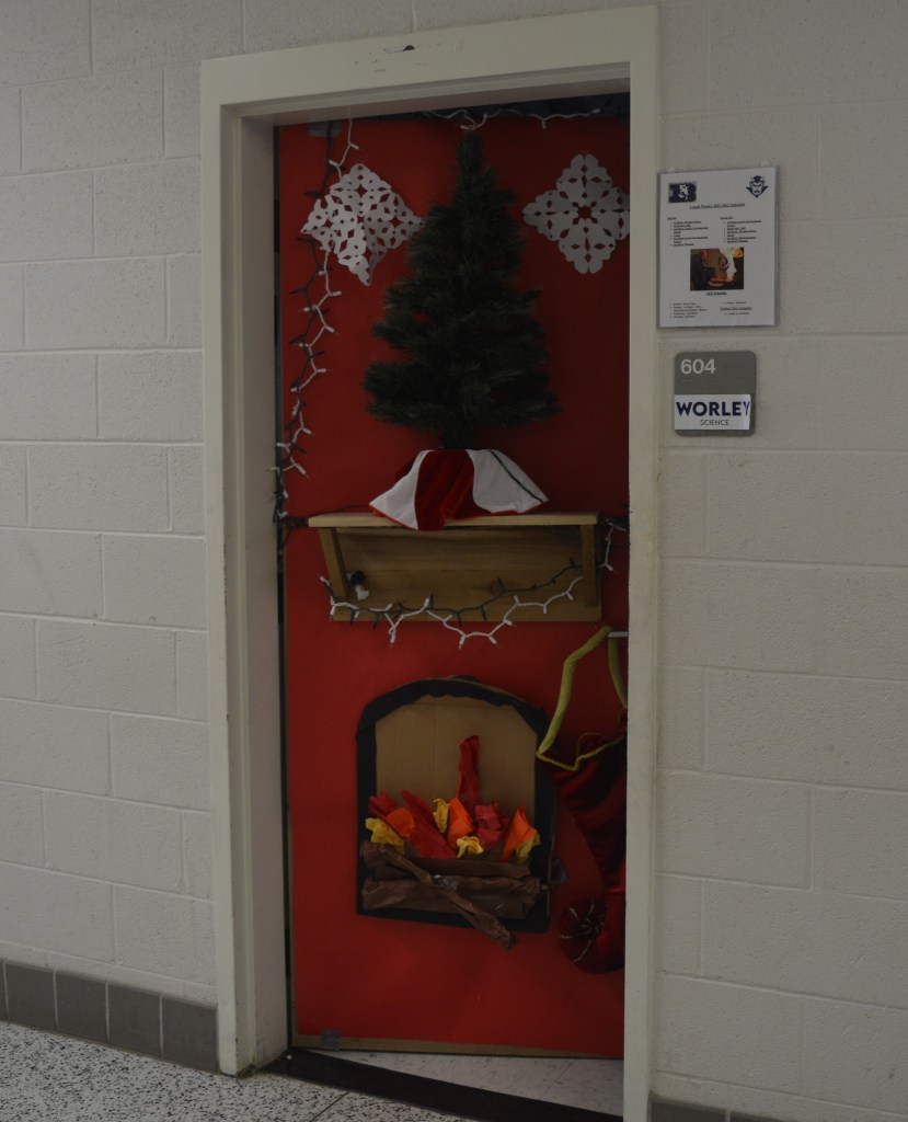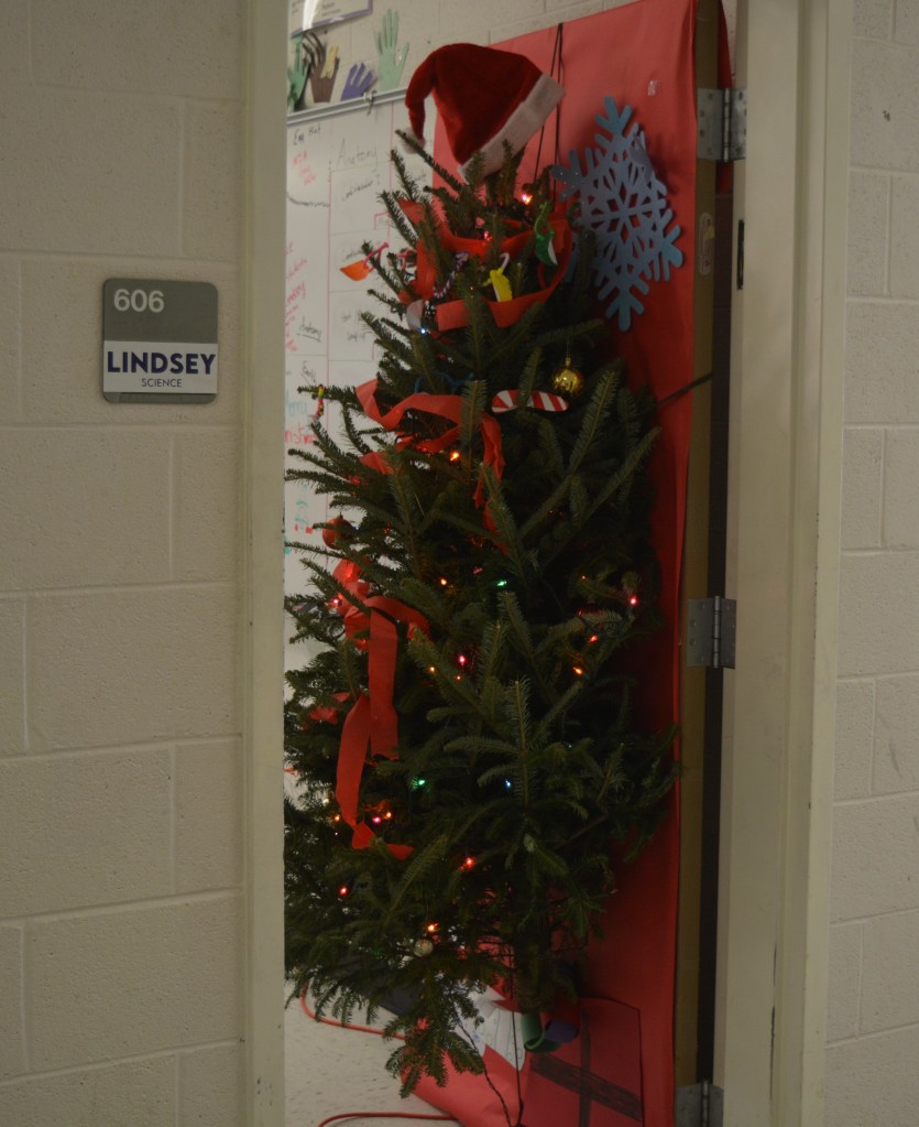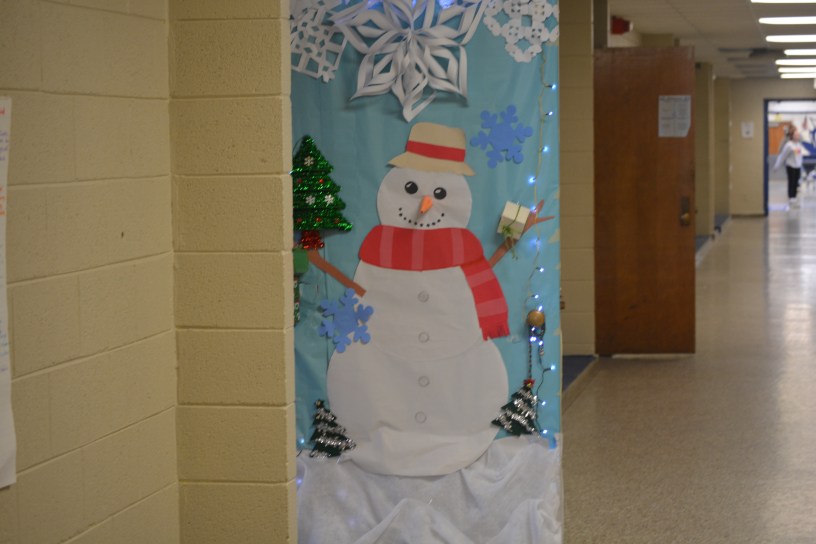 DECA, sponsored by marketing teacher Mrs. Smith, hosts the annual contest. Each Homebase is challenged to create the best holiday decoration on their classroom door.