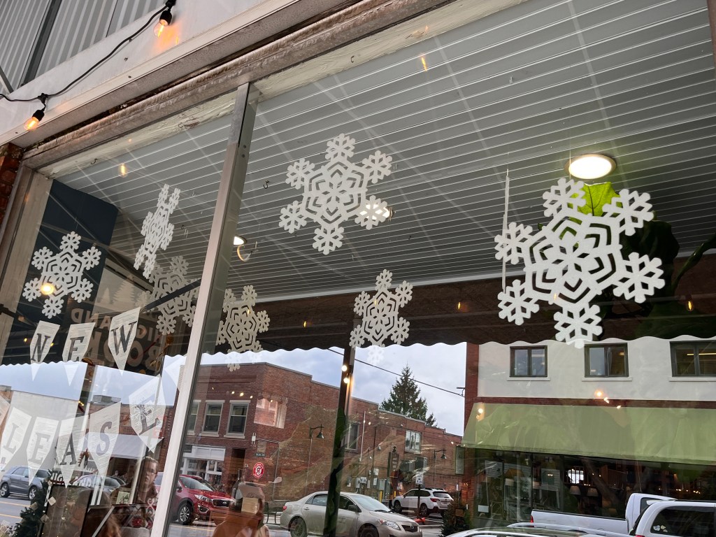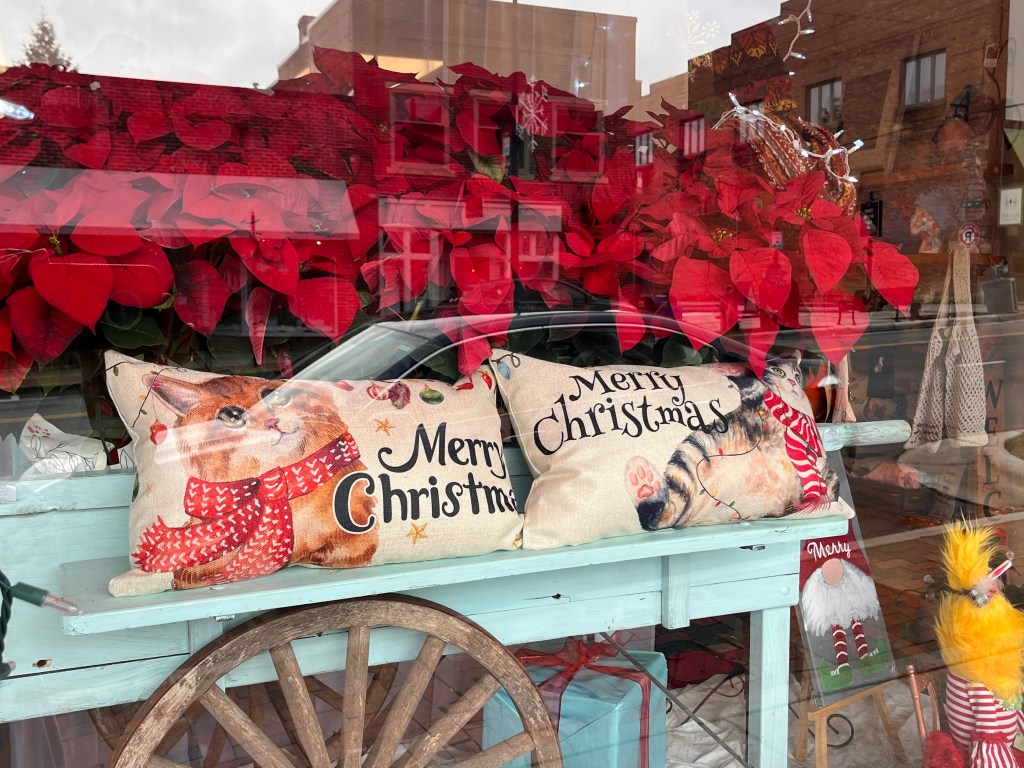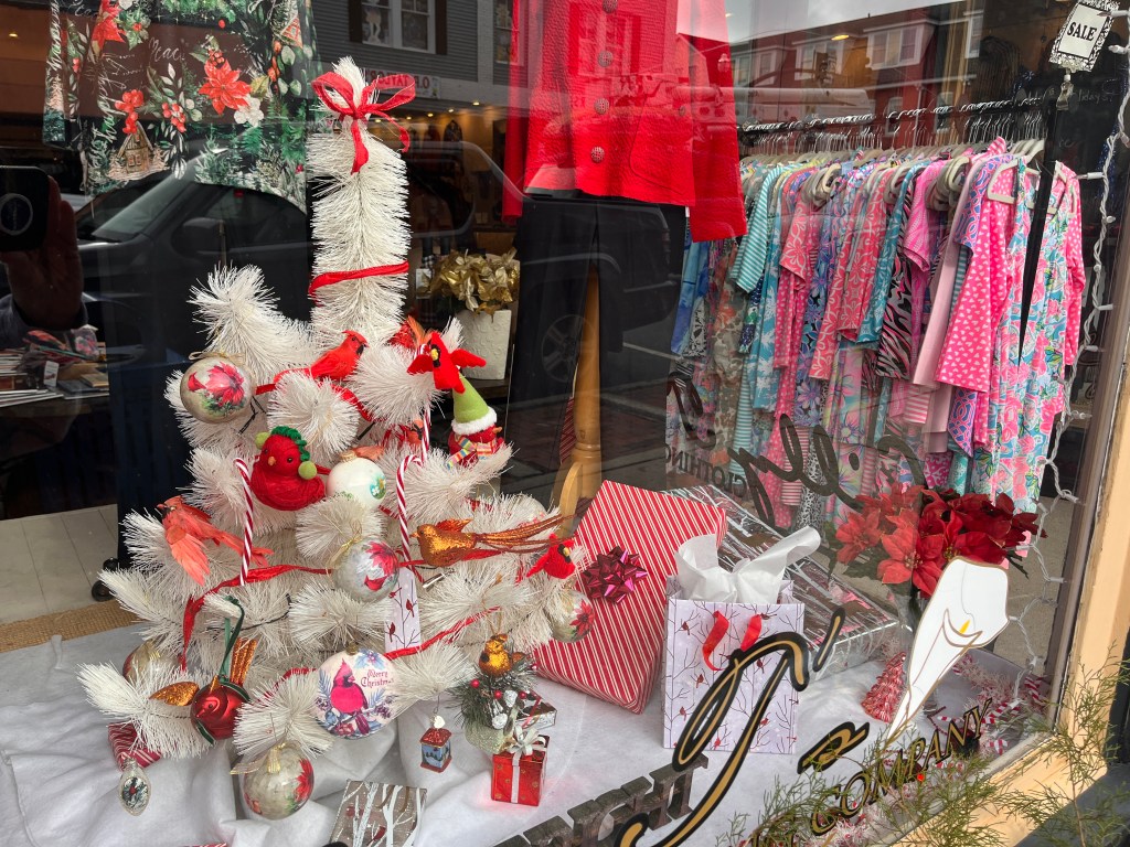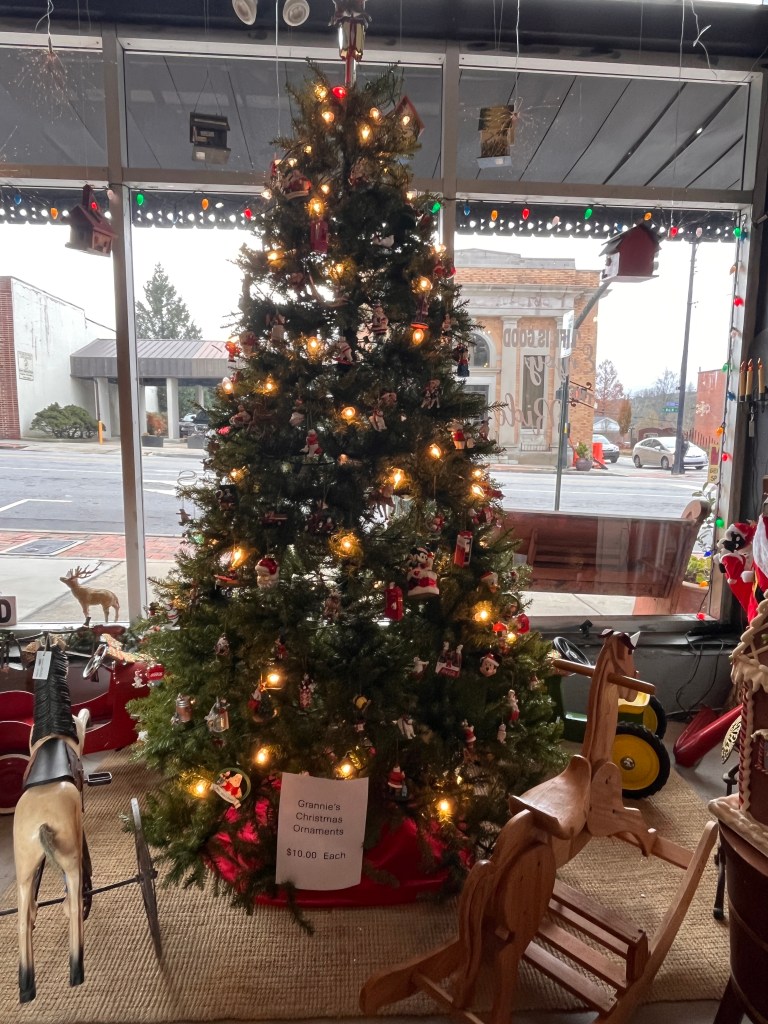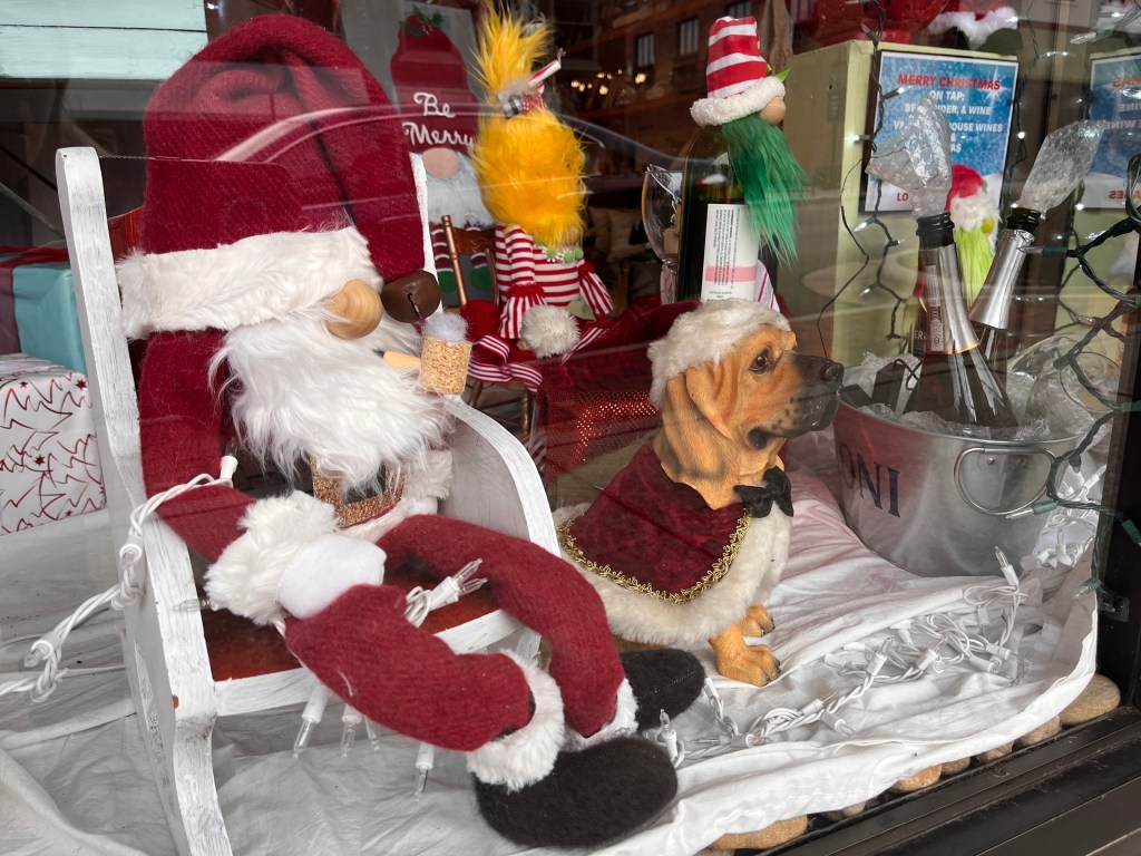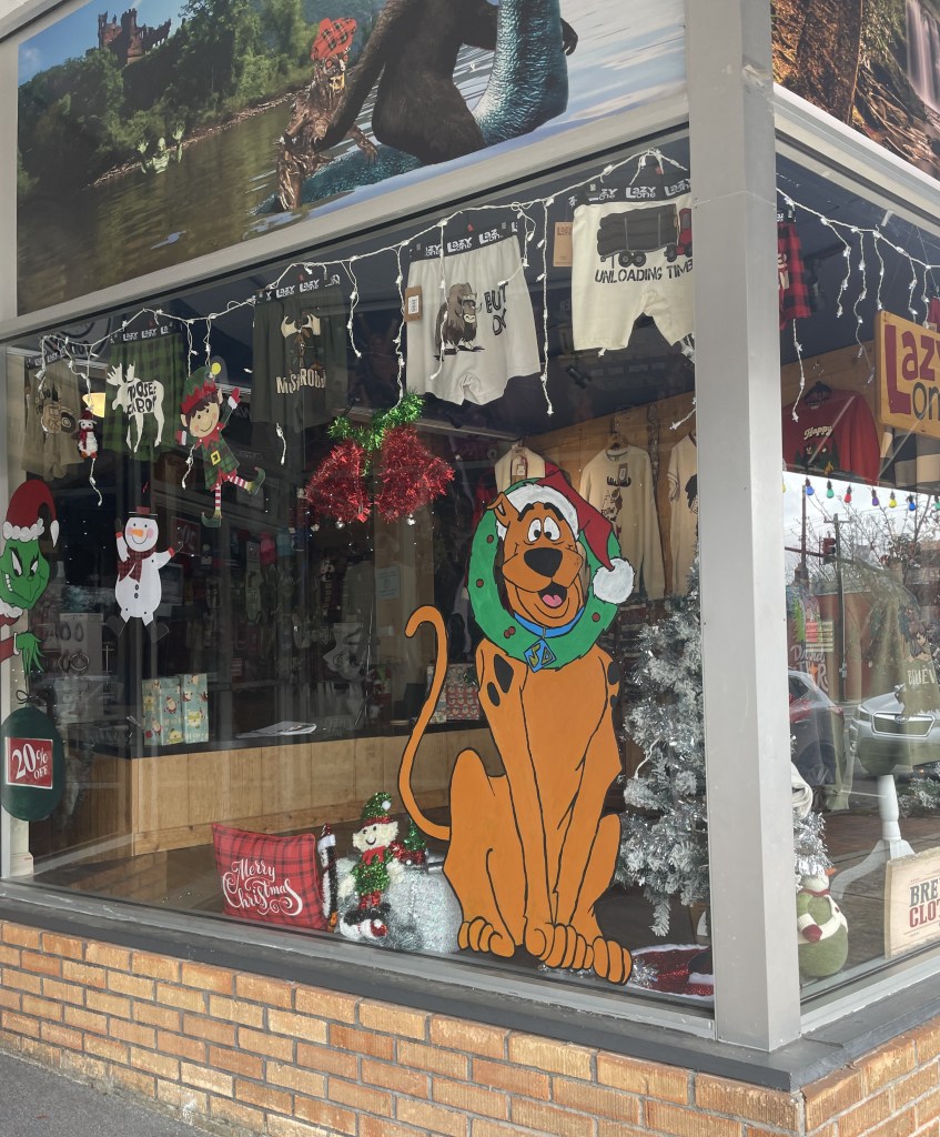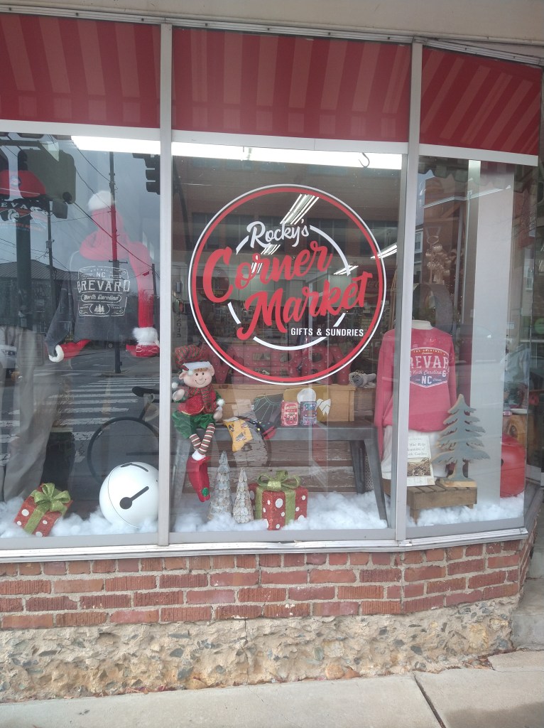 Downtown Brevard businesses are festively decorated for Christmas, with window displays, lights and even a sleigh pulled by white squirrels.