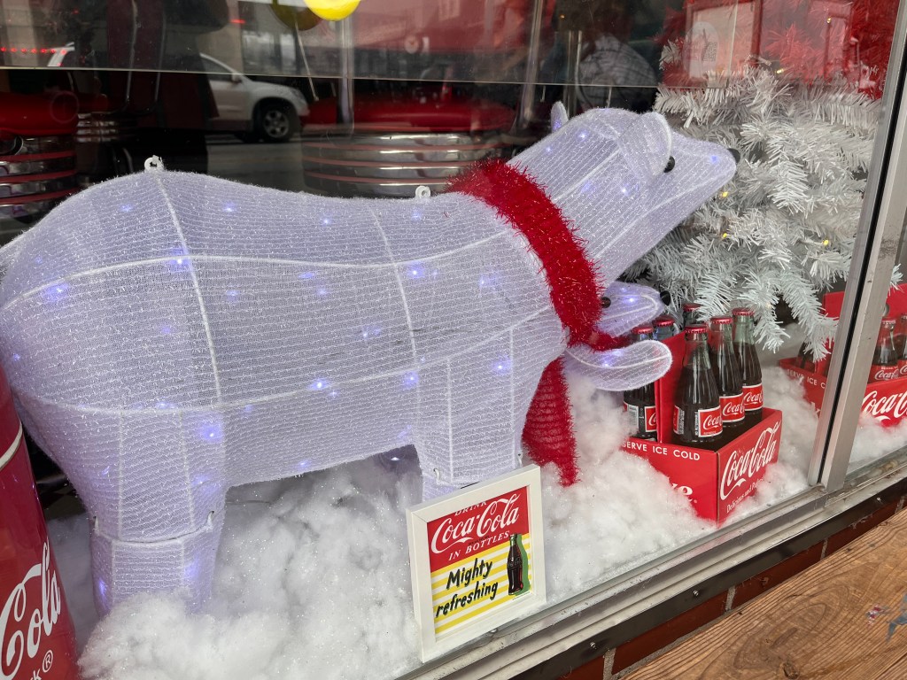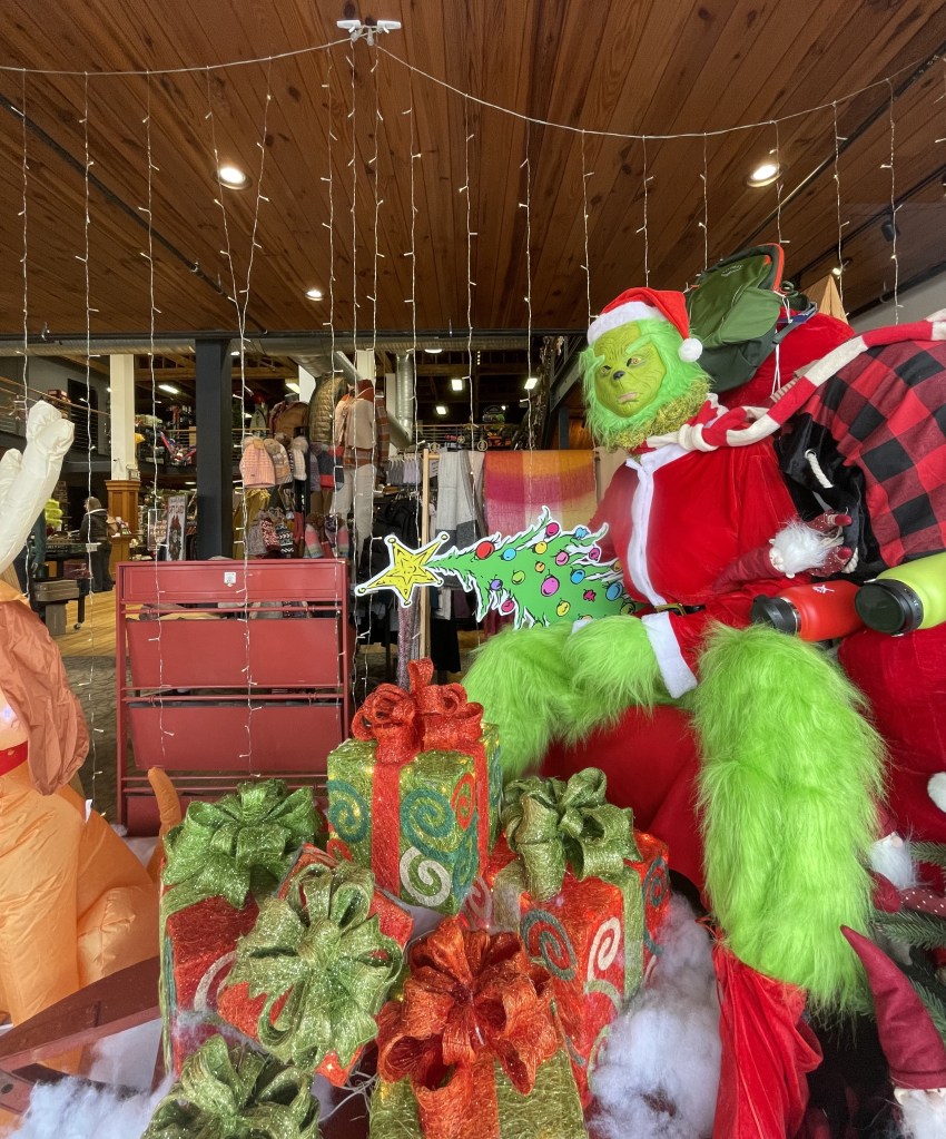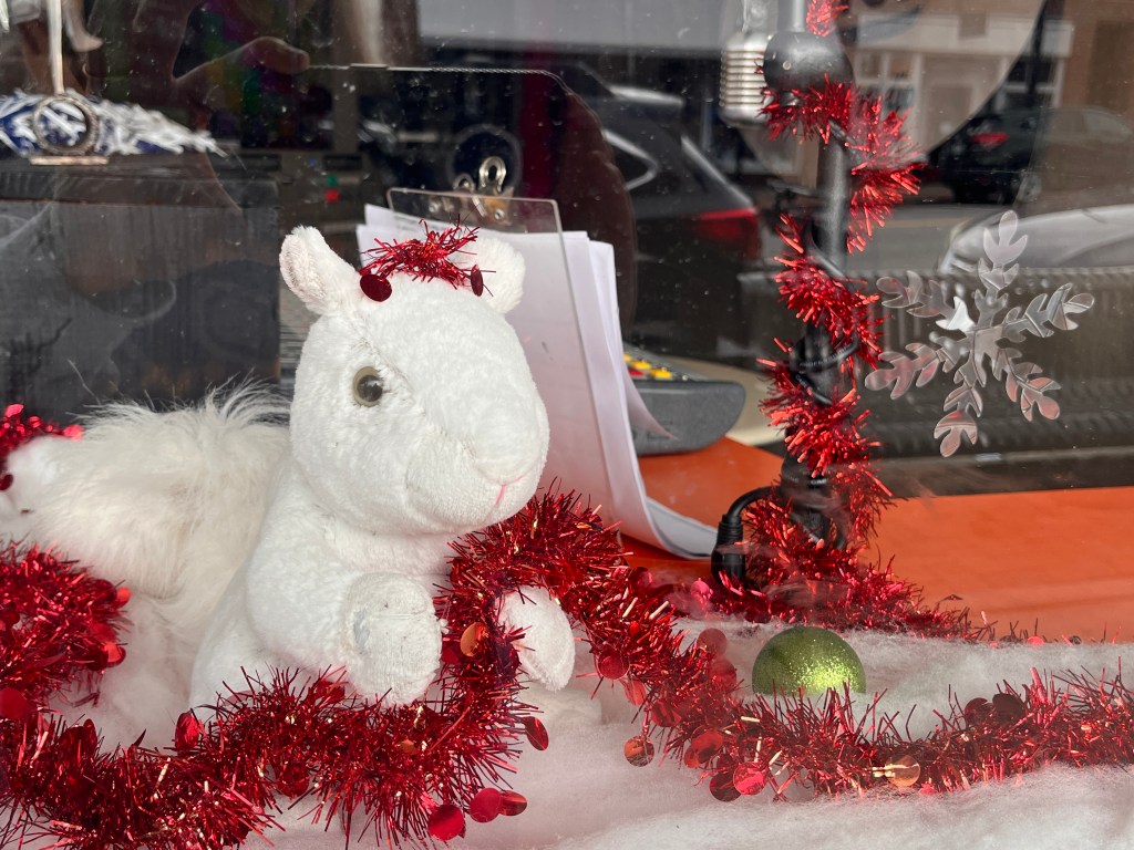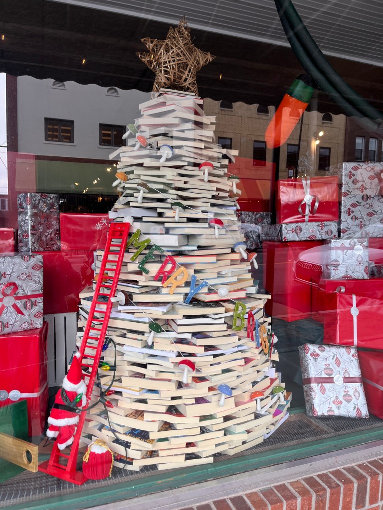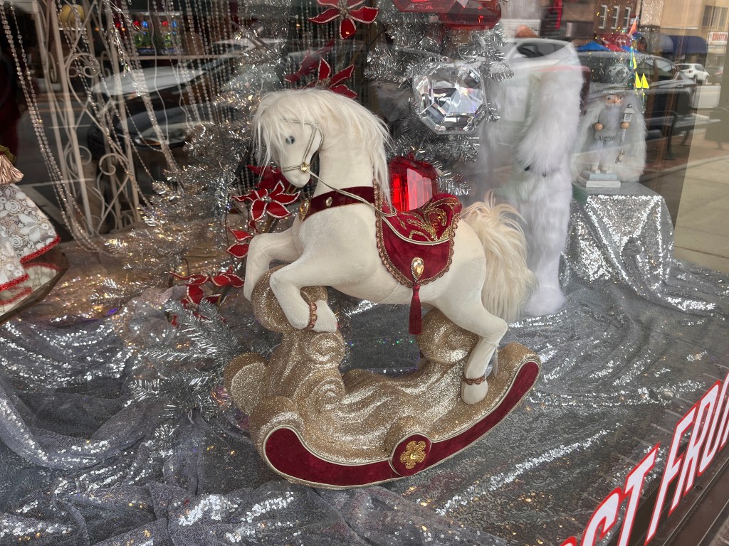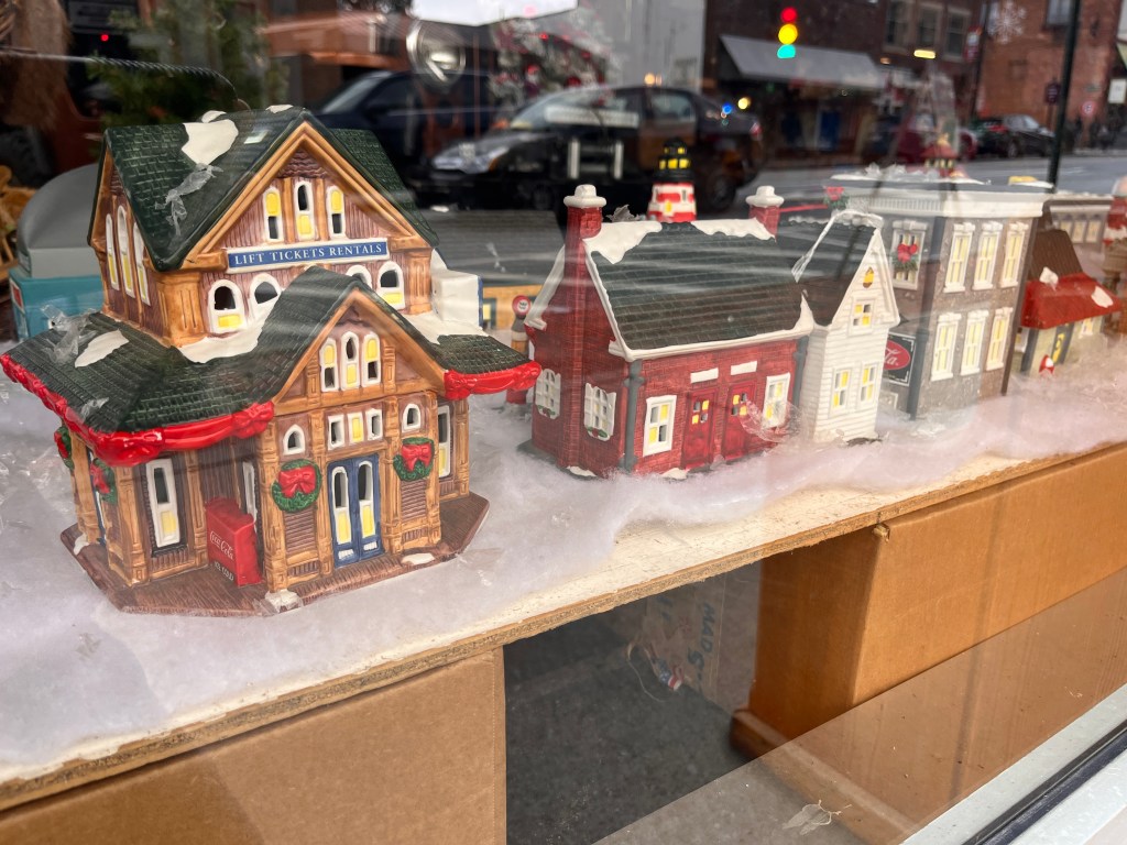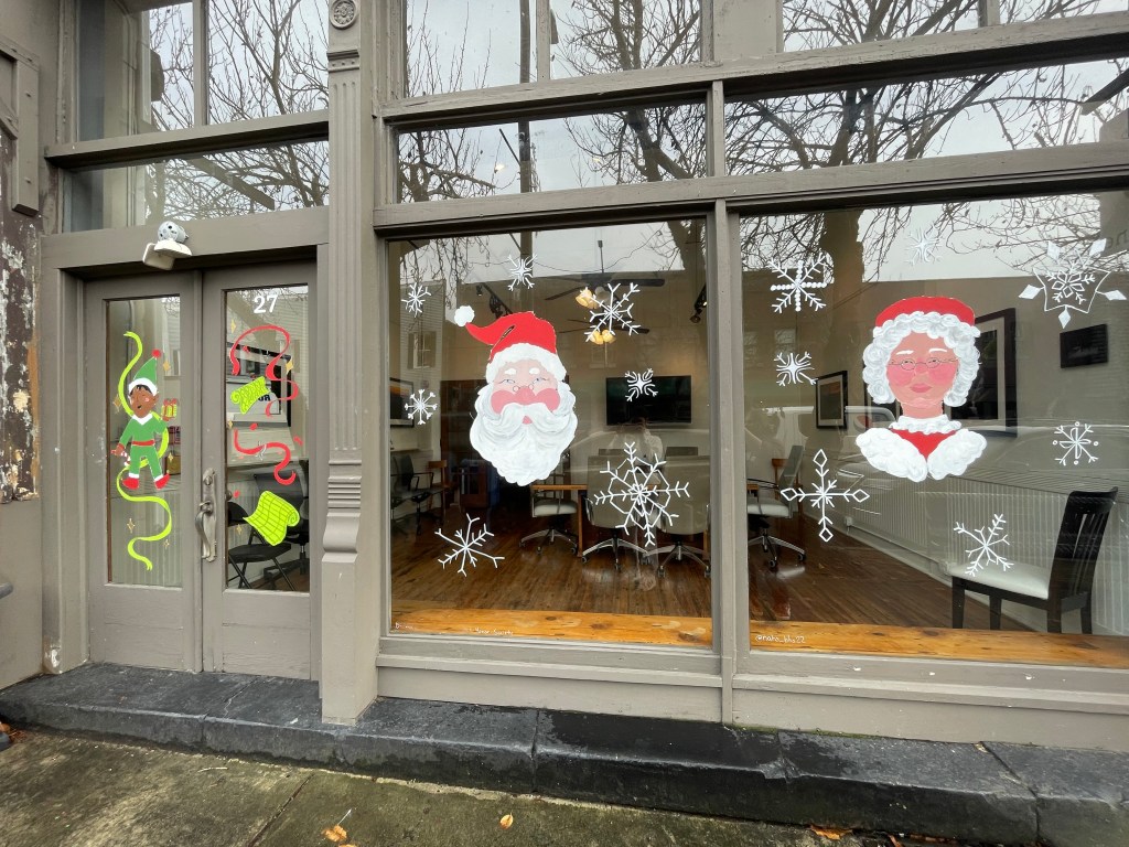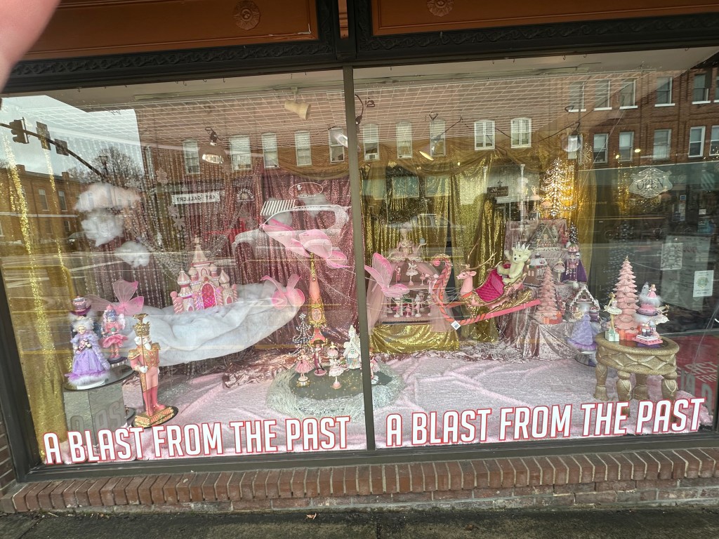Downtown Brevard businesses are festively decorated for Christmas, with window displays, lights and even a sleigh pulled by white squirrels.