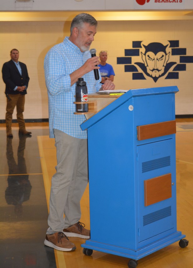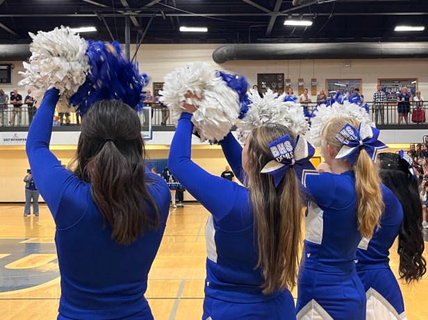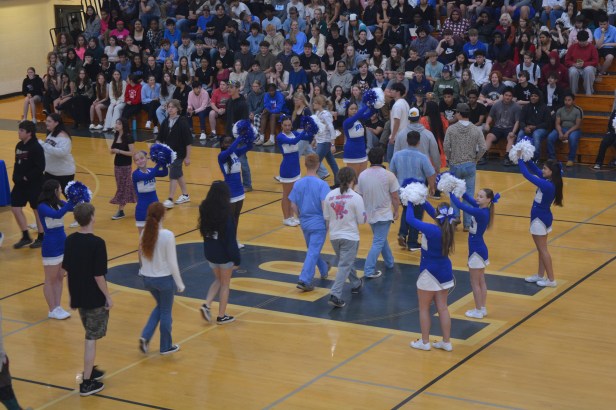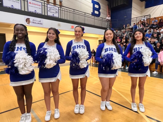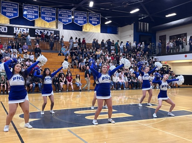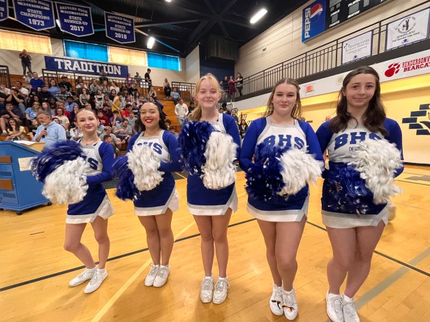 The event had the atmosphere of a pep rally, with performances by the BHS cheerleaders and marching band.