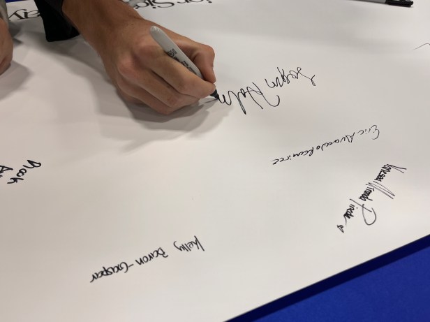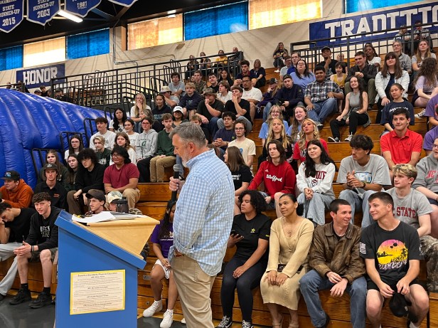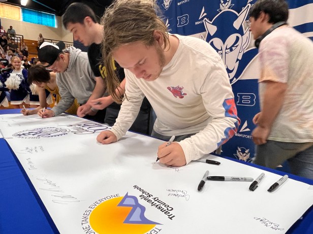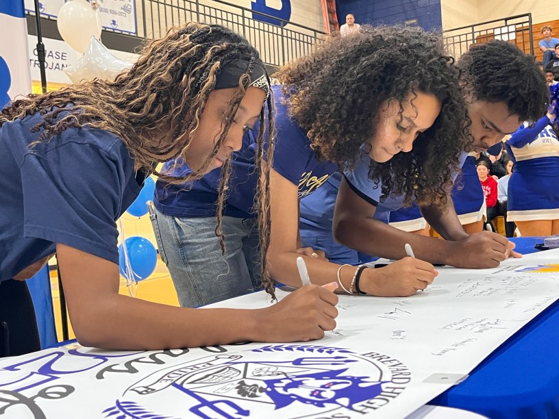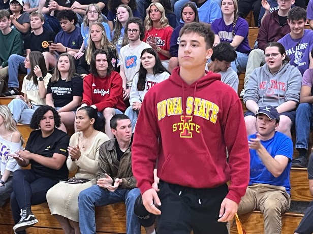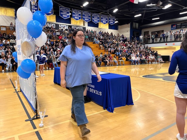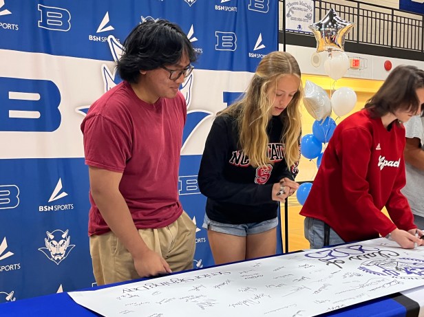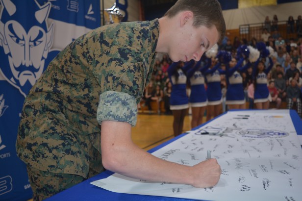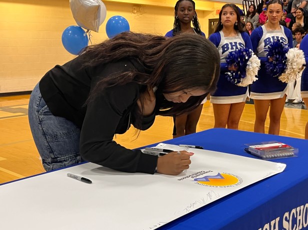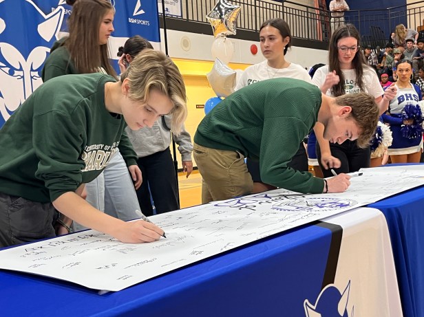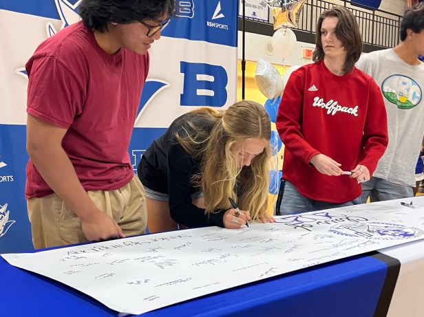 Seniors entered the gym through a tunnel to cheers from those in the packed gym. They were then called by name to sign the Class of 2025 banner and be recognized for their post-graduation decisions, whether they plan to attend a two- or four-year college, enlist in the military or enter the workforce.