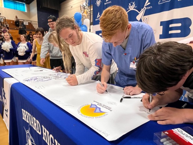 Members of the Brevard High Class of 2025 were recognized Thursday, May 1 during the first BHS Senior Signing Day in the gymnasium, which was packed with students, staff and family.