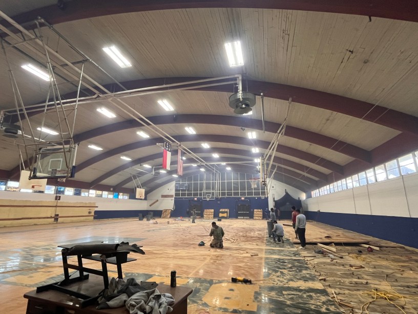 Renovations continue in the old gym March 26, not long before the construction work was halted.