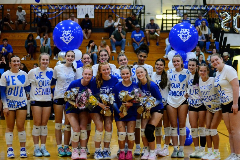 The Brevard High volleyball team celebrates its seniors during a home game Sept. 30. Photo courtesy of Christie Whitt of InProcess Photogaphy.