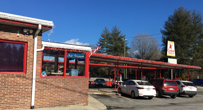 The Cardinal Drive-In is one of downtown Brevard’s beloved diners. Cardinal is a long-running roadside eatery with a 1950s theme.