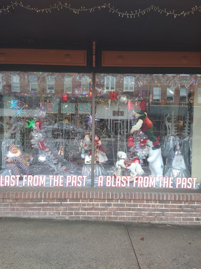 The 2024 window decoration at A Blast from the Past, which won the “People’s Choice Award” in the annual Holiday Windows Competition in downtown Brevard. Photo by Broadcaster staff.