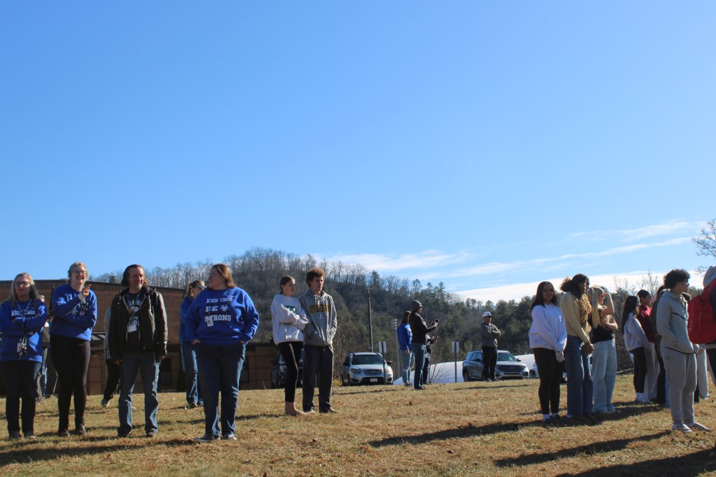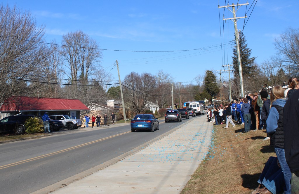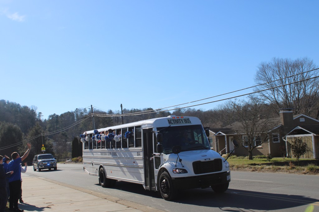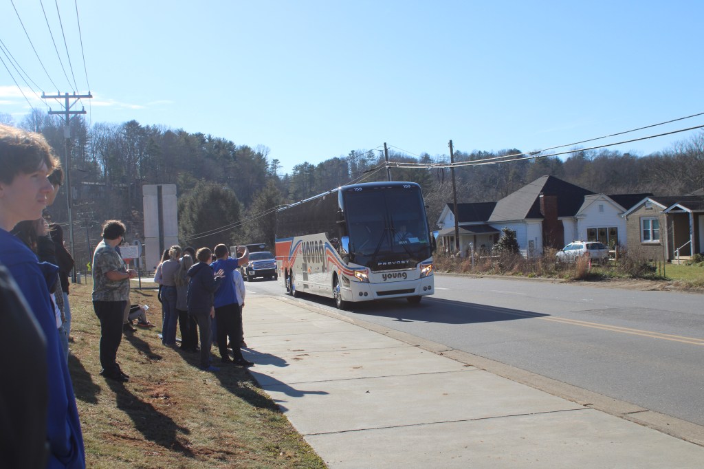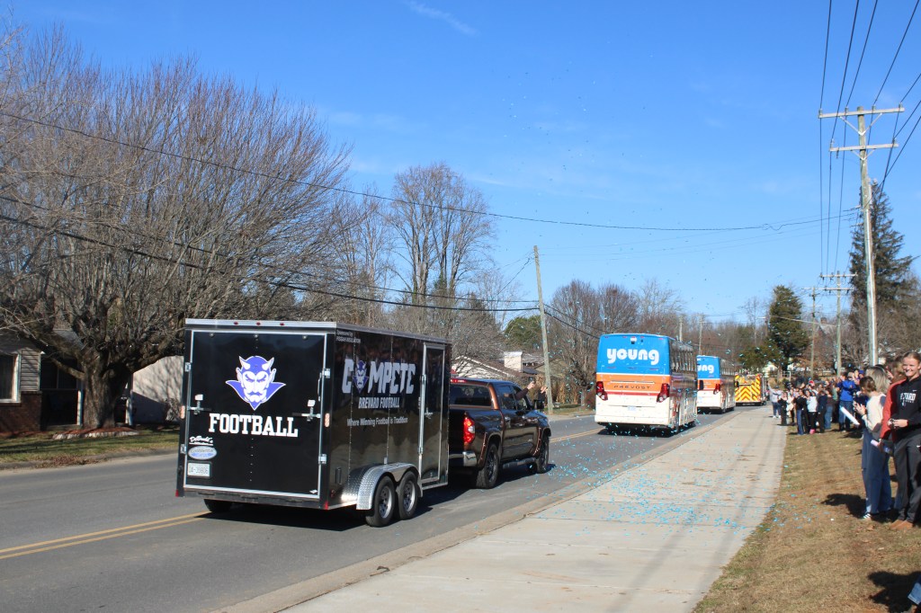 Students and staff filled the front lawn of Brevard High Friday afternoon to cheer on the Blue Devil football game as the team left for Hickory a day before the school’s biggest game in 43 years.