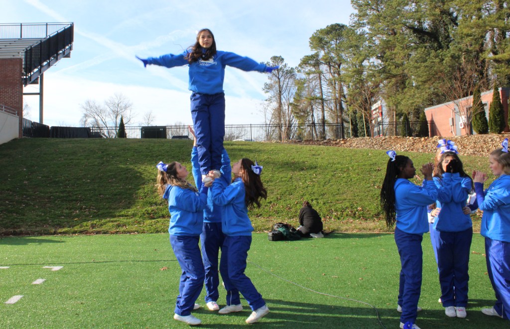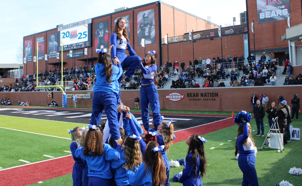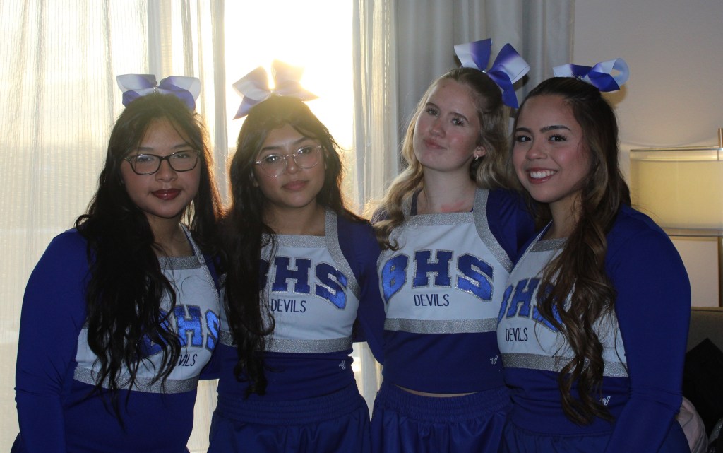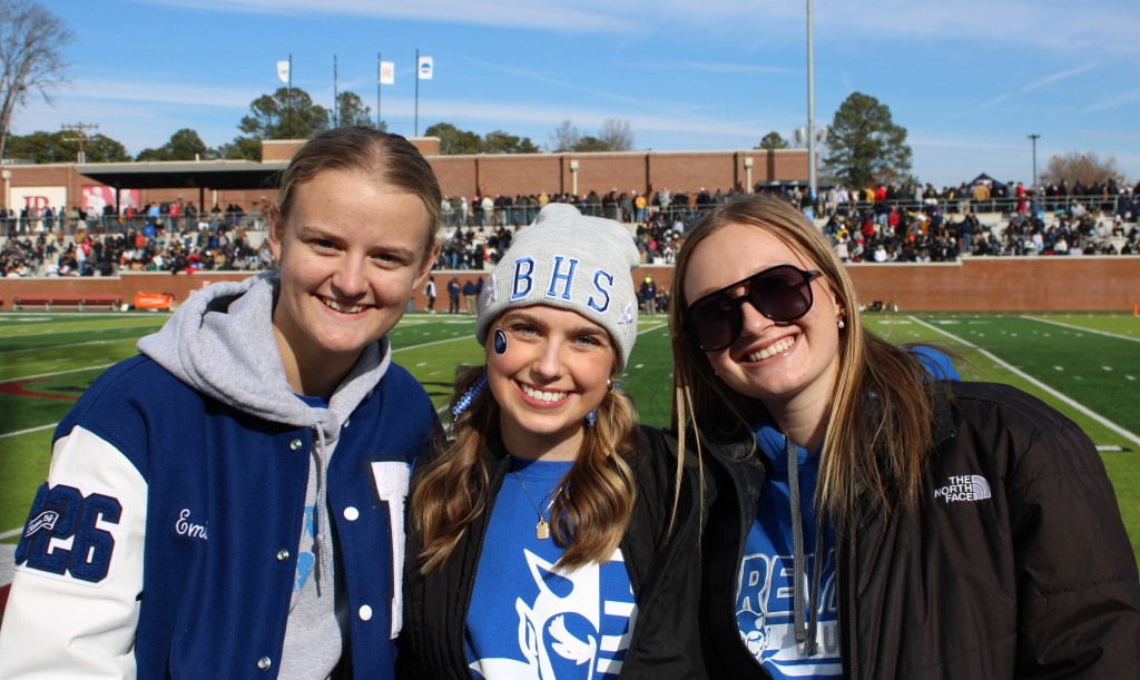 BHS cheerleaders performed at the game to support the team and energize the home crowd. Below are photo galleries of the game and the crowd, as well as the cheerleading squad’s experience at the state championship.