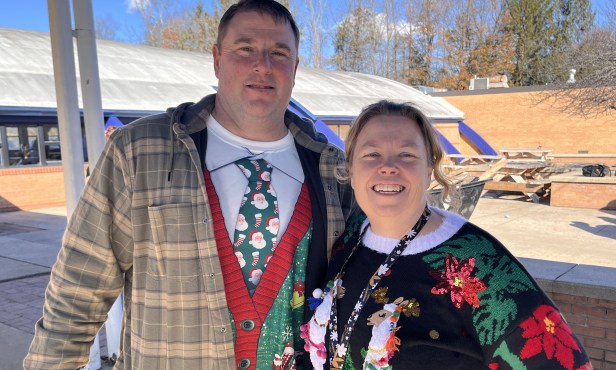 Galloway and Assistant Principal Melinda Stinson dress up for the holidays in December 2024. The Broadcaster file photo.