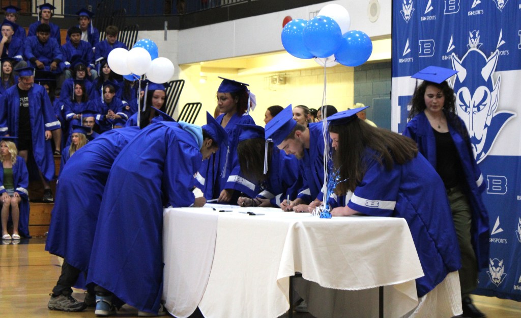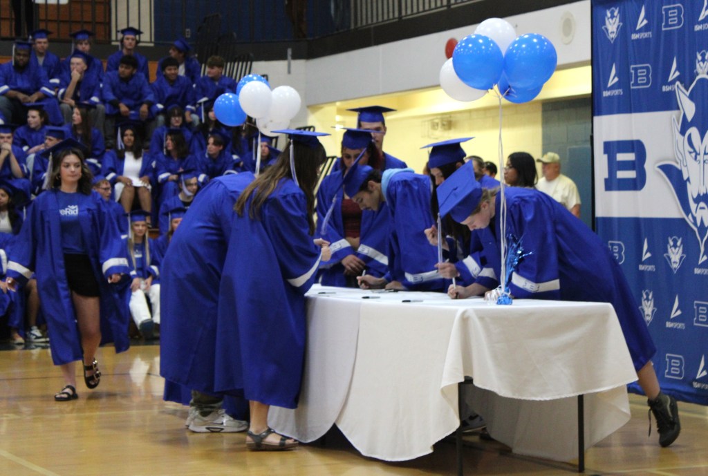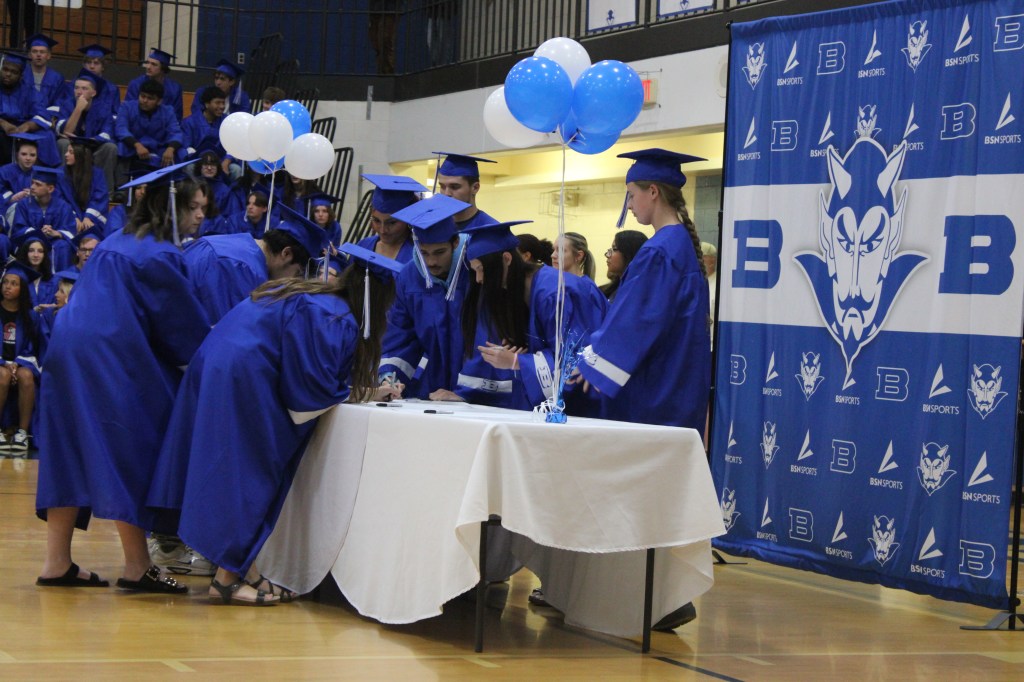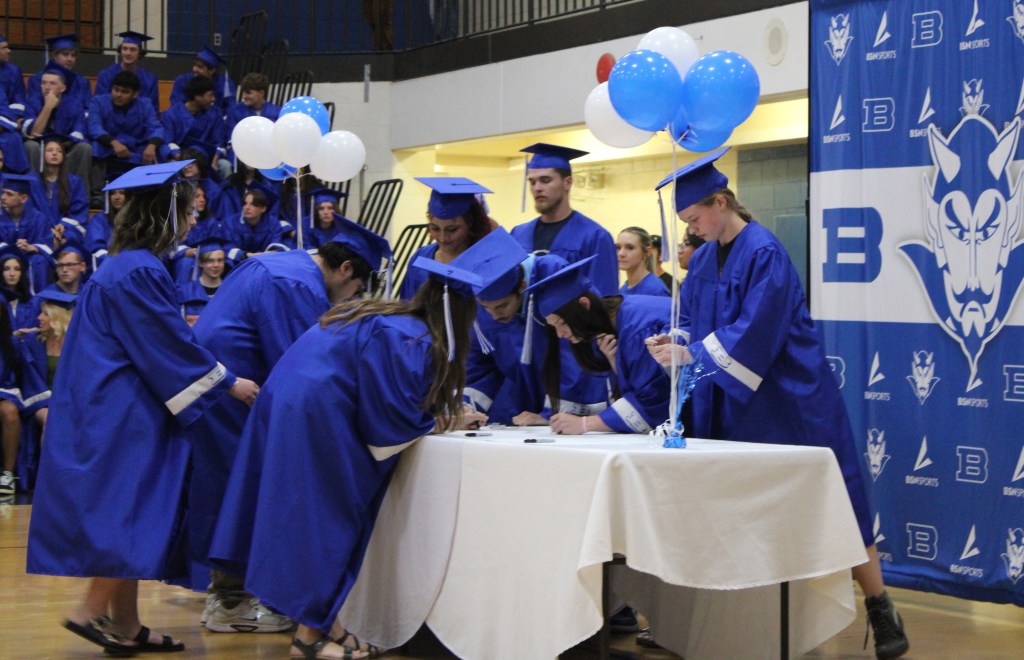 With the entire school in attendance, they were called down to sign the BHS Class of 2026 Banner in the following groups: two-year college, four-year college, military, workforce and exploration.