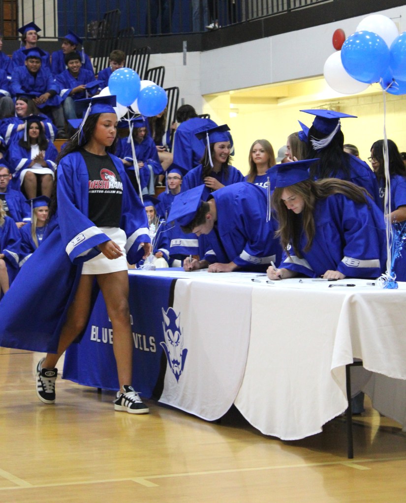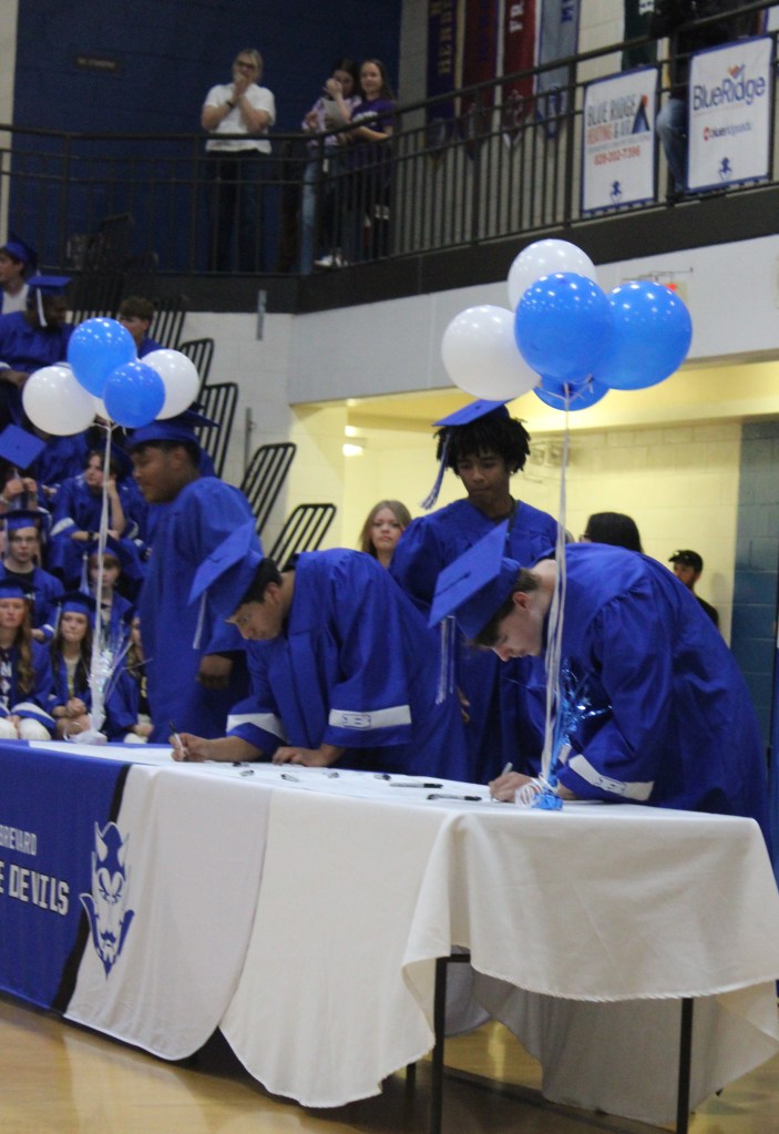 “Today is a celebration of commitment, courage and the future. As we gather to recognize each of you – our seniors – signing your name to a new chapter, we’re filled with pride,” emcee and social studies teacher Richard Stubbs told the crowd.